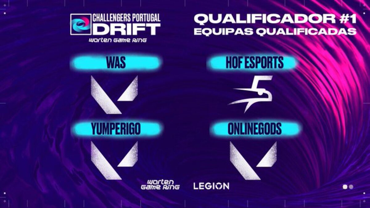 Qualificador #1 ✅#WaS, @HOF_esports, #YUMPERIGO e #ONLINEGODS são as primeiras equipas a garantir o apuramento para o Challengers Portugal: DRIFT x WGR.