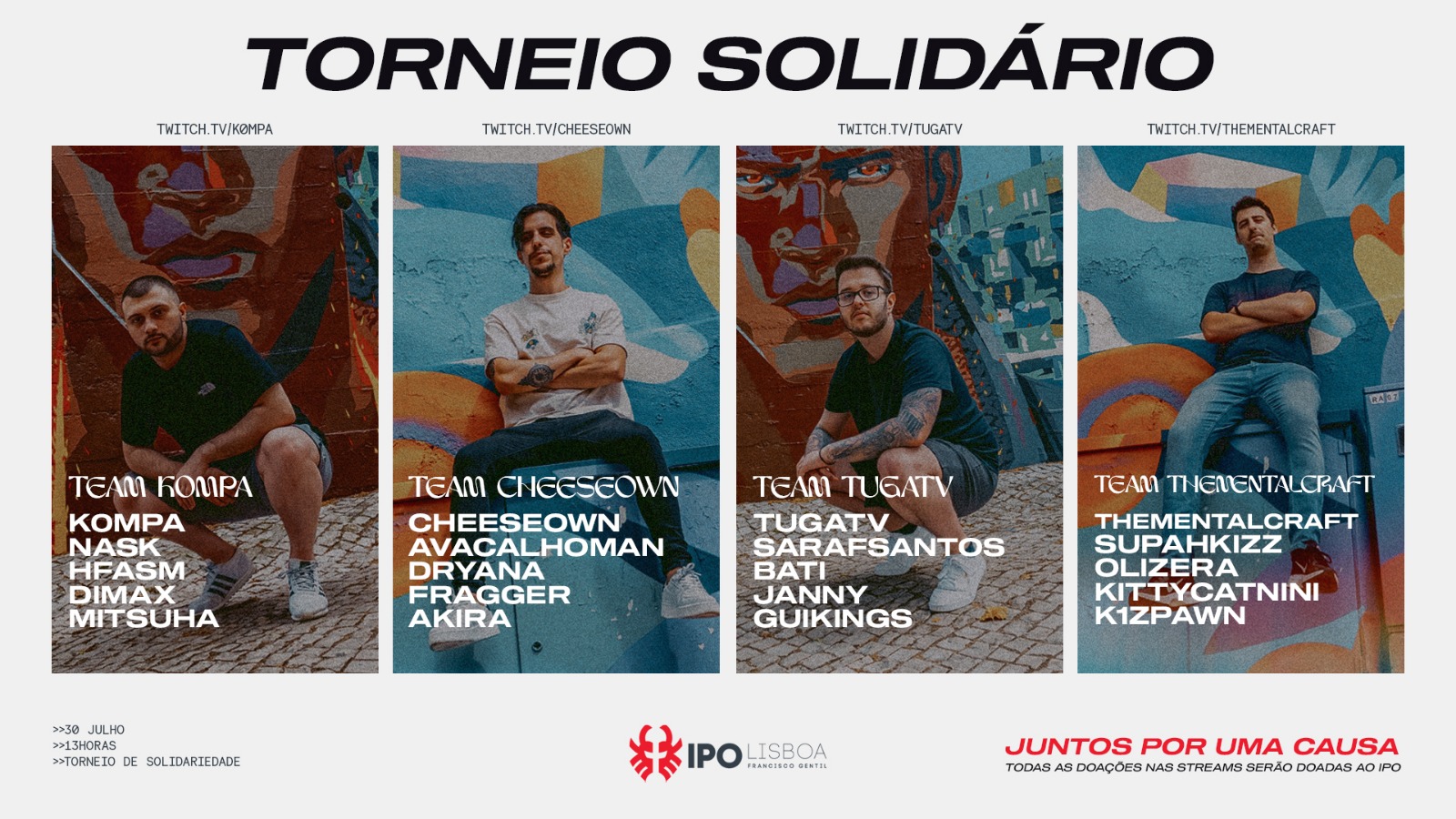 Nesta campanha de ajuda ao IPO de Lisboa, o streamer português irá juntar quatro equipas para a competição. Com o sorteio marcado para dia 30 do mês corrente, os conjuntos comandados por K0mpa, TugaTV, TheMentalCraft e Cheeseown, farão parte desta ação solidária.