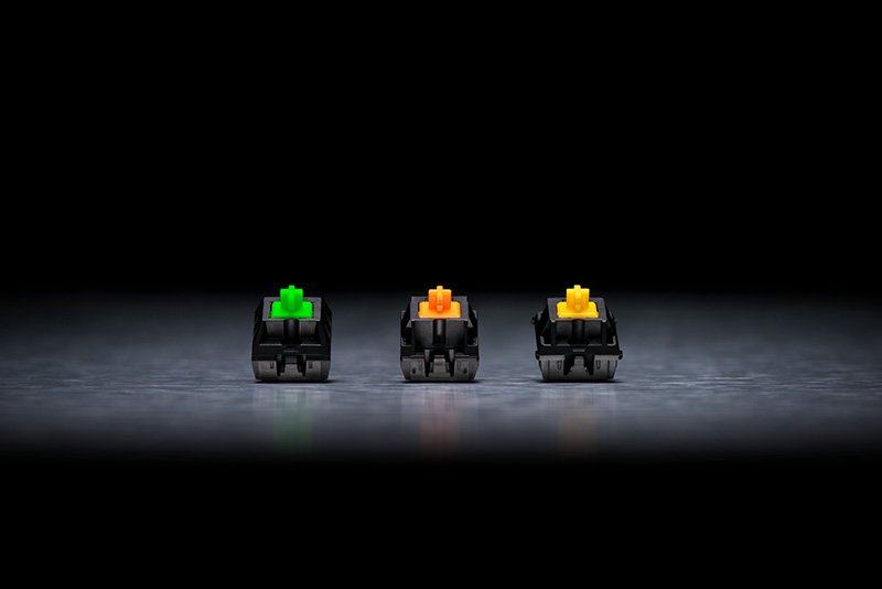 Passando para a conversa do toque e dos Switches do teclado, o BlackWidow Chroma V2 tem três tipos de switches à disposição do utilizador, sendo eles próprios da Razer e com diferentes características: