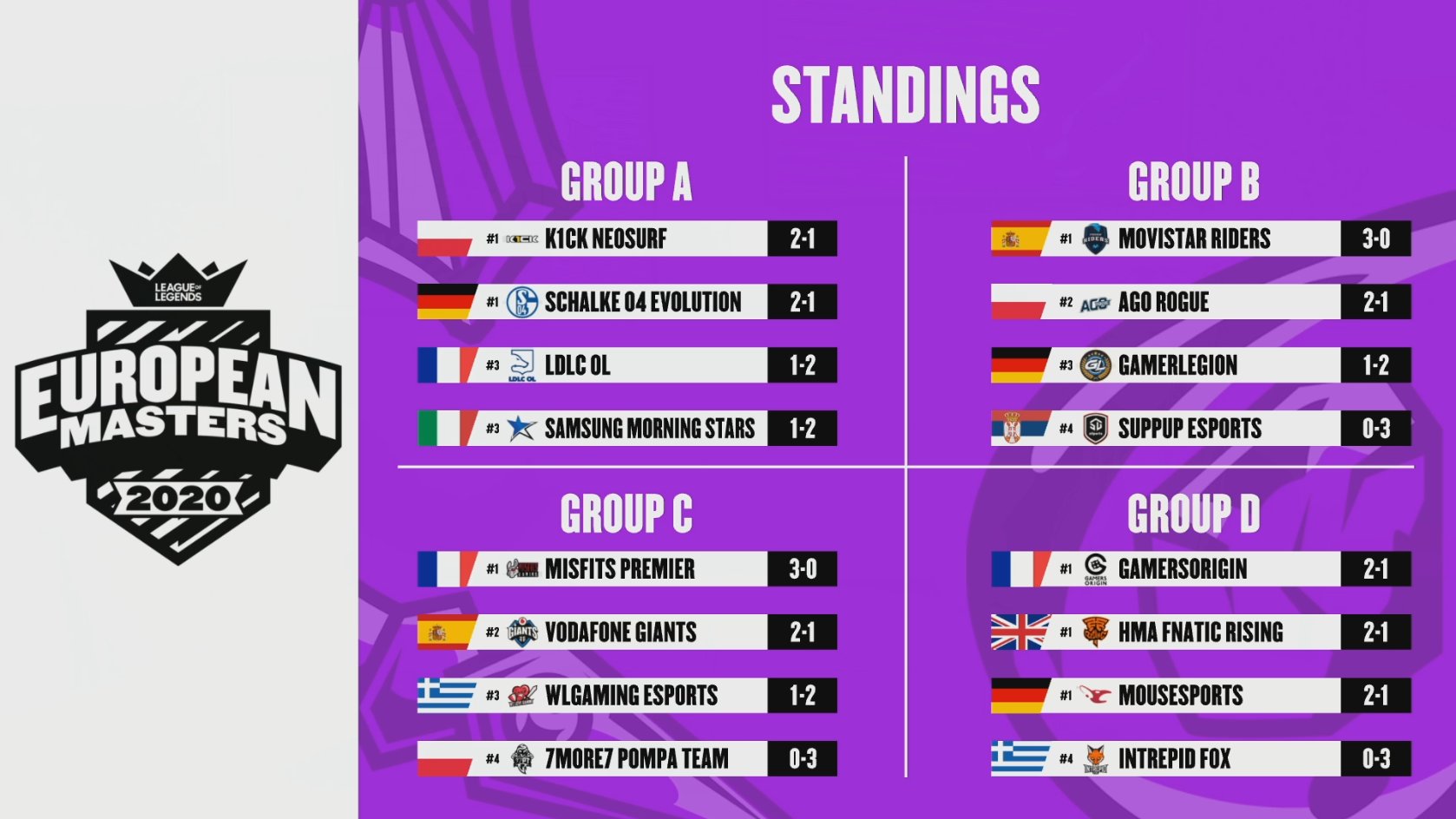 A 1ª voilta da fase de grupos na European Masters Summer 2020 de League of Legends chegou ao fim na noite de ontem com os representantes portugueses em boa posição para seguir em frente rumo aos Playoffs.