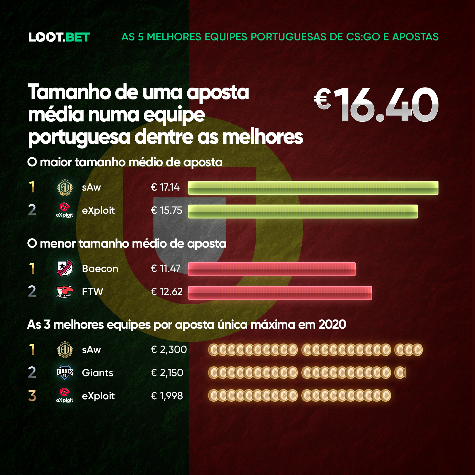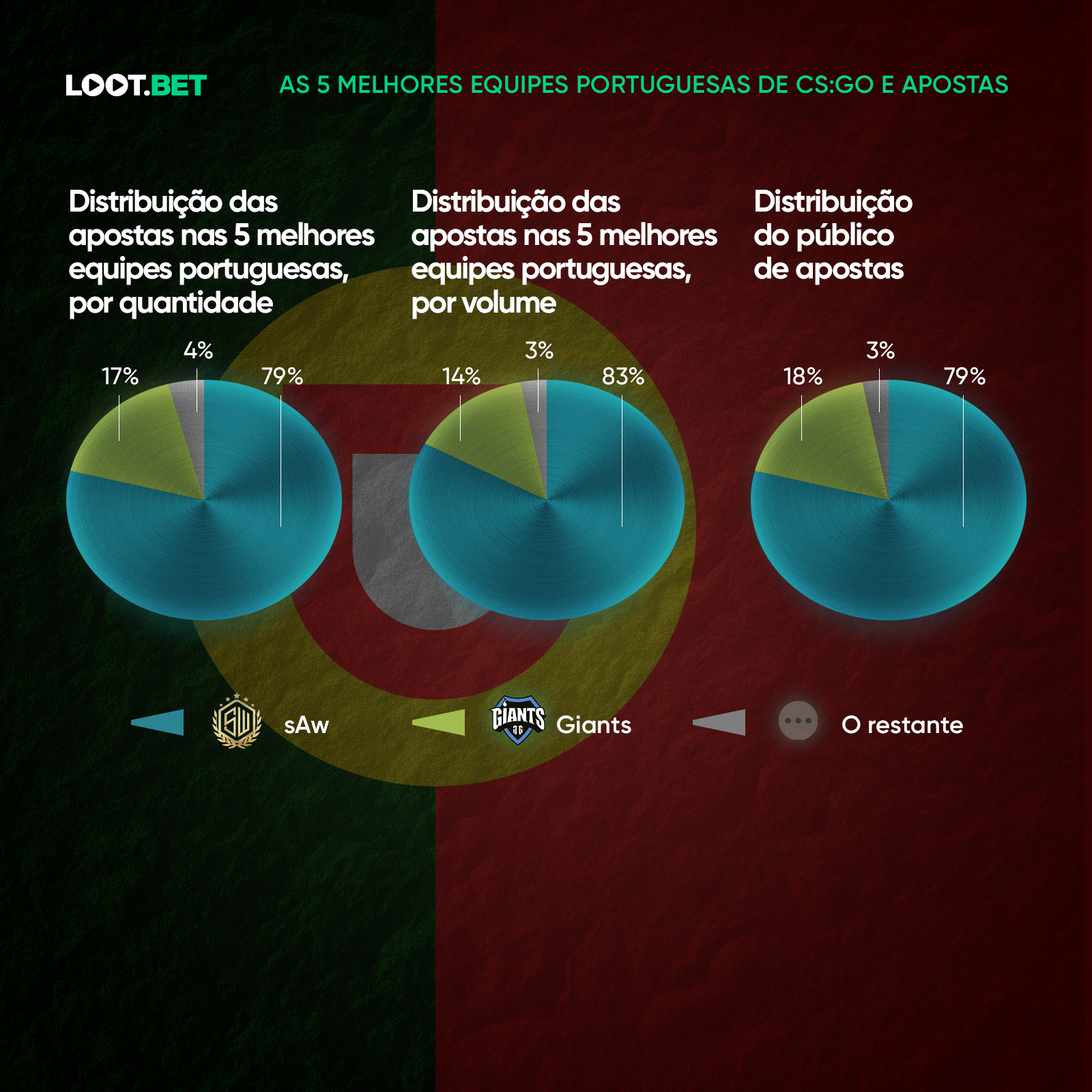 No seu estudo, a LOOT.BET considerou as 5 melhores equipas portuguesas, de acordo com o ranking da HLTV de 28 de setembro de 2020. Entre outras coisas, foi revelado em quem os fãs mais gostam de apostar e as equipas que são mais e menos lucrativas. Aqui estão os resultados mais interessantes da pesquisa dedicada da LOOT.BET.