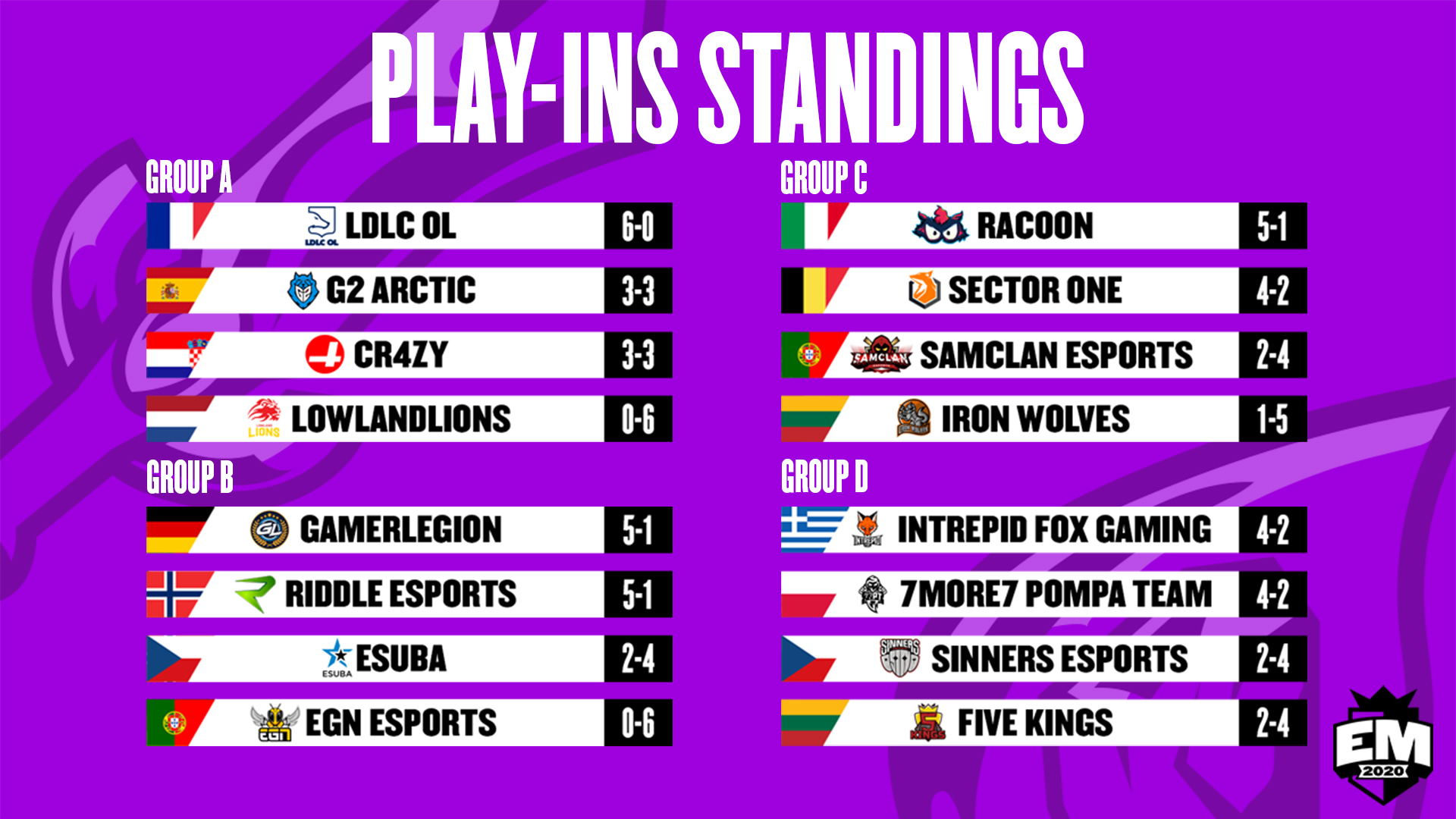 A fase de grupos do Play-In de acesso à European Masters Summer 2020 terminou e as equipas portuguesas de EGN e SAMCLAN não conseguiram avançar para os Knockouts decisivos.