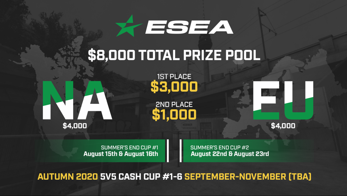 Numa atualização feita ao seu serviço de forma a melhorar a experiência de CS:GO em geral, a ESEA introduziu 3 novas medidas entre as quais estão duas Cash Cups mensais nas regiões da América do Norte e Europa.
