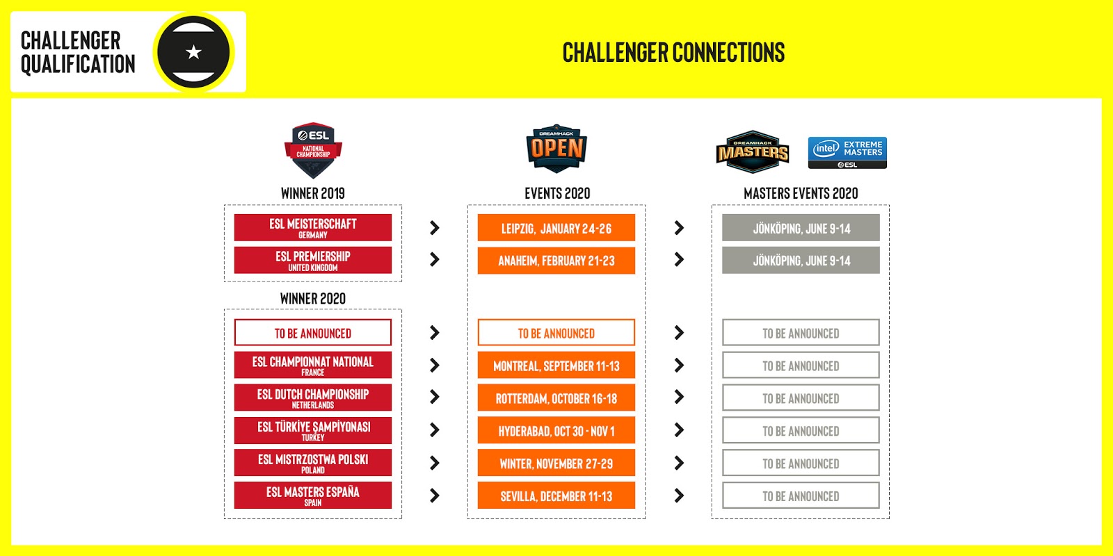 A ESL revelou mais informações relativamente aos seus campeonatos nacionais, confirmando a continuação da ESL CS:GO Masters que permitirá ao seu vencedor participar no evento DreamHack Open Sevilha em 2020.