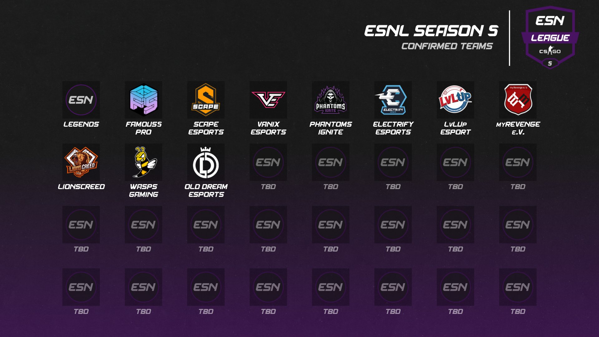 Estamos a uma semana de iniciar mais uma temporada da ESN League, competição que terá na sua quinta edição £800 em jogo (cerca de 940€) e equipas portuguesas já confirmadas na competição, sendo elas Scape e Old Dream.