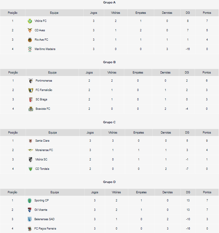 Os jogos do Grupo A e D já foram todos disputados com goleadas das antigas nas partidas do Grupo D – a necessitar apenas de um empate, o Sporting CP cilindrou o Belenenses SAD com um 7-1 enquanto que o Gil Vicente FC embalou o FC Paços de Ferreira com uns expressivos 8-0.