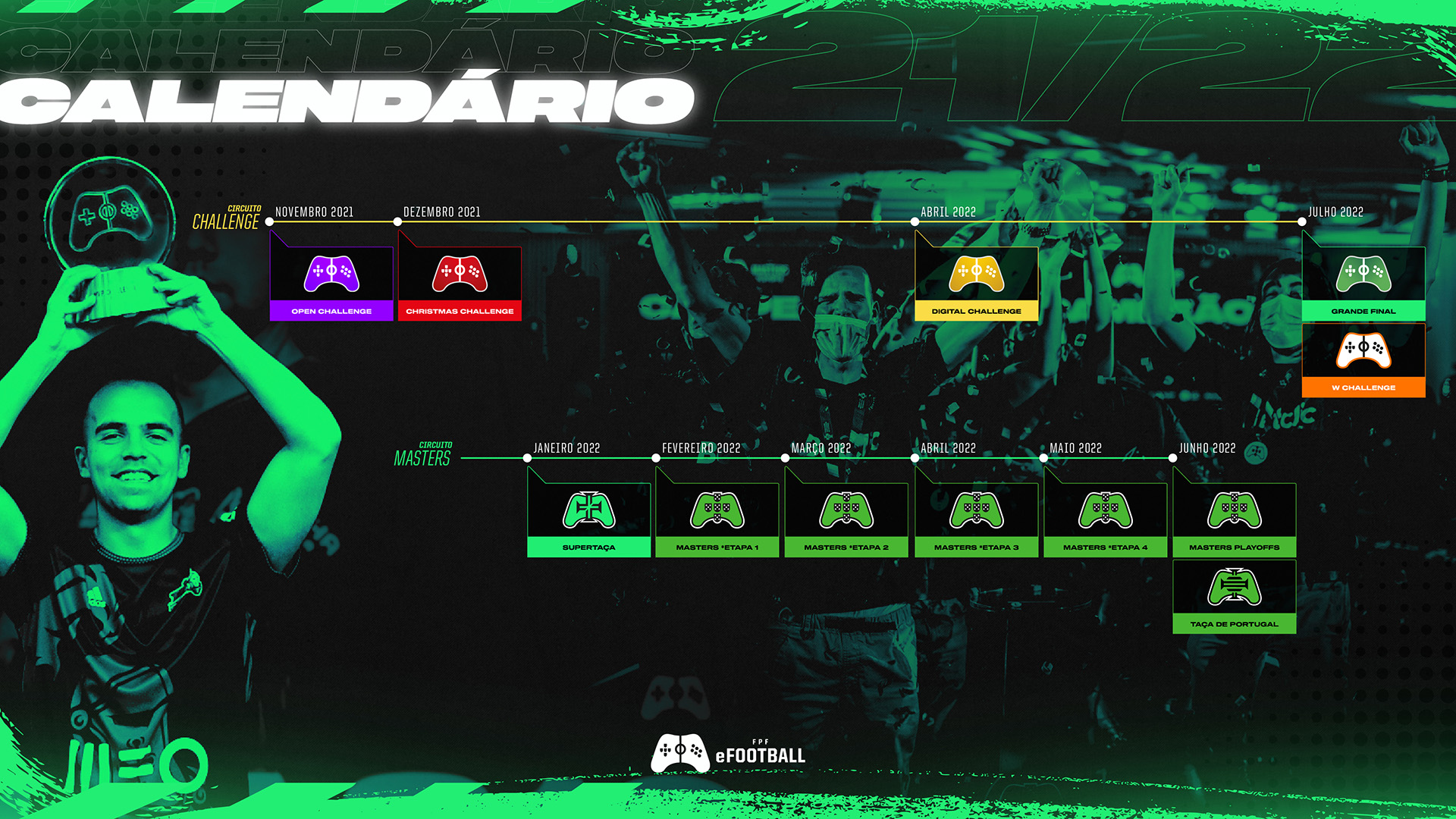 A FPF eFootball apresentou, no dia de ontem, o calendário de competições para os circuitos Challenge e Masters para a temporada 2021/2022.
