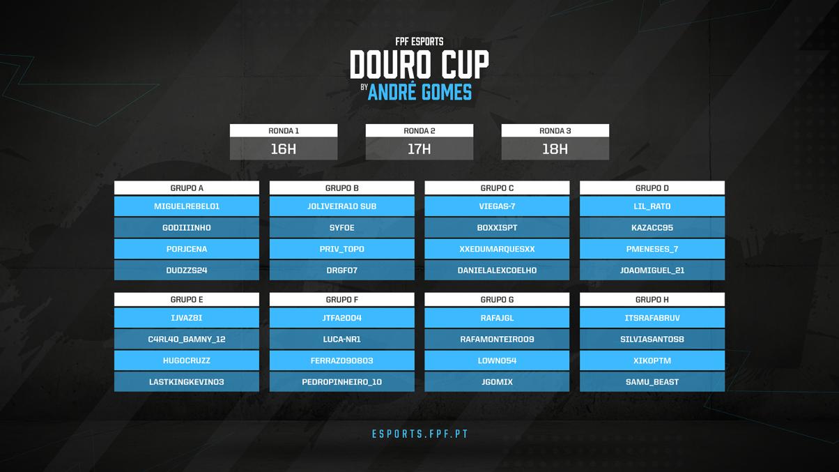 O FPF eSports Douro Cup by André Gomes arranca já amanhã e hoje foram divulgados os resultados do sorteio para a fase de grupos, jogada a partir das 16h00 de sábado com o intuito de apurar 16 finalistas.
