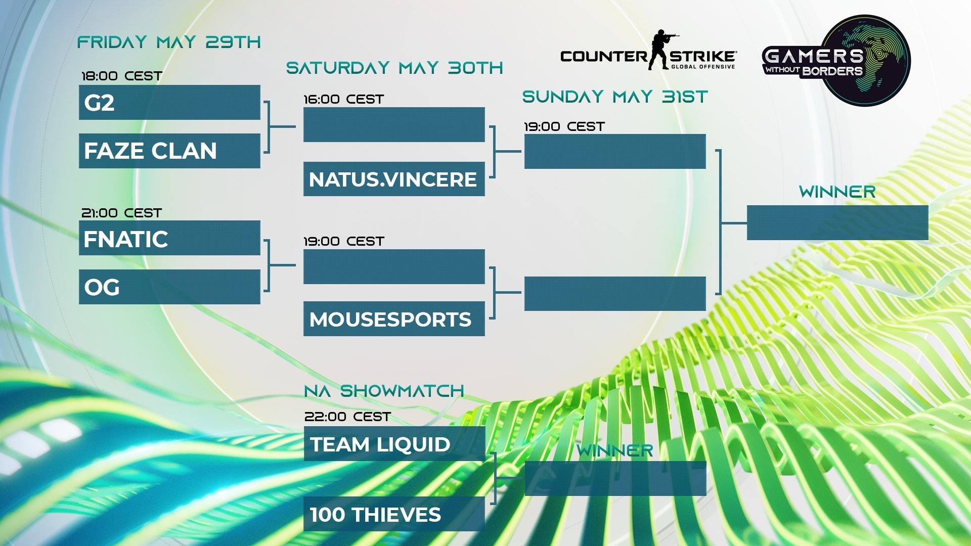 A organização Gamers Without Borders que anunciou diversos torneios solidários com um prémio total de $10,000,000 para instituições de caridade revelou mais informações relativas à sua competição de CS:GO.