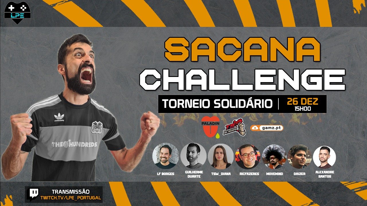 António Raminhos, LF Borges, Guilherme Duarte, Alexandre Santos, TSW_Diana, RicFazeres, MoveMind e Daizer são os convidados e presenças confirmadas no "Sacana Challenge" da LPE, iniciando a transmissão pelas 15:00 do dia 26 de Dezembro.