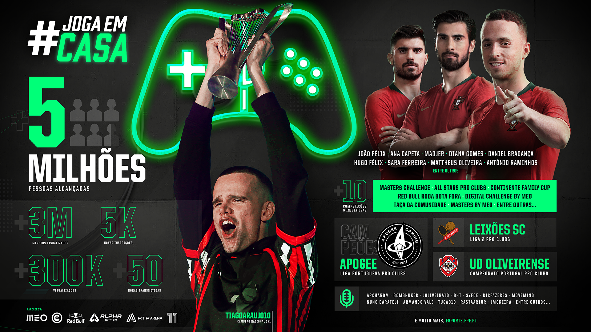 Masters Challenge, All Stars Pro Clubs, Continente Family Cup, Red Bull Roda Bota Fora, Digital Challenge by MEO, Taça da Comunidade, Masters by MEO foram algumas das competições inseridas nesta iniciativa que alcançou 5 milhões de pessoas alcançadas pelos conteúdos nas redes sociais da FPF, mais de 3 milhões de minutos visualizados e 300 mil visualizações nas mais de 50 horas transmitidas.