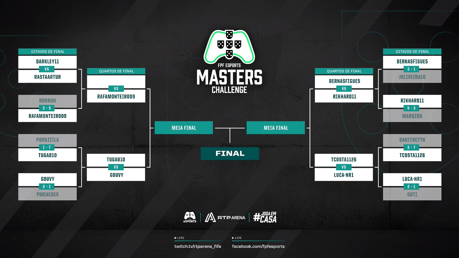 Os resultados dos Oitavos de Final da FPF Esports Masters Challenge até agora. (Clicar na imagem para ampliar)