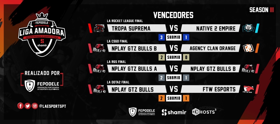 Os vencedores da 3ª temporada da Liga Amadora de Esports by FEPODELE foram conhecidos durante a tarde de ontem, evento que esteve inserido no programada da Moche XL Games World.