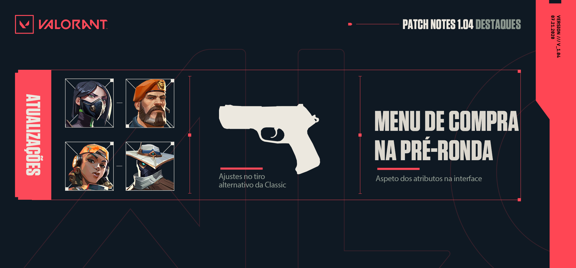 A Riot Games já revelou as alterações que serão feitas na próxima atualização do VALORANT, mexendo nas propriedades de quatro agentes e na pistola "Classic".