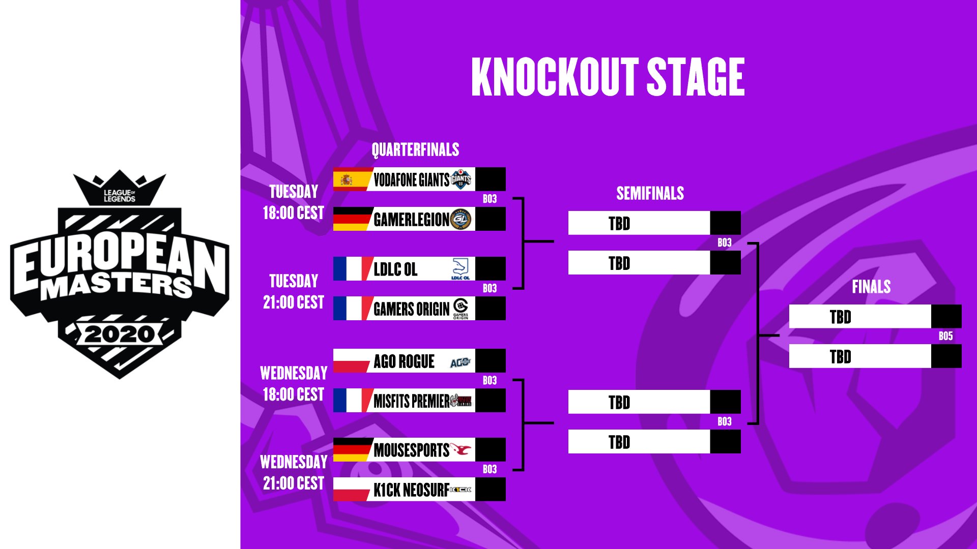 A árvore do torneio está definida para coroar o campeão da EU Masters Summer 2020.