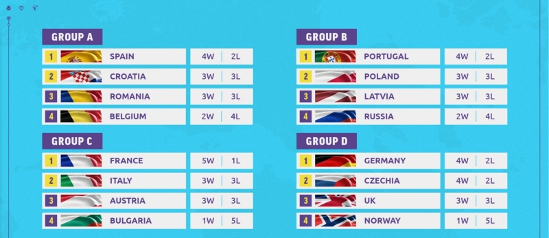 Após uma primeira volta com resultados menos favoráveis – a seleção nacional conseguiu bater apenas a Polónia para somar 3 pontos, o conjunto português mudou o "chip" para a 2ª volta e completou uma sequência perfeita de vitórias por 2-0 para garantir o 1º lugar do Grupo B.