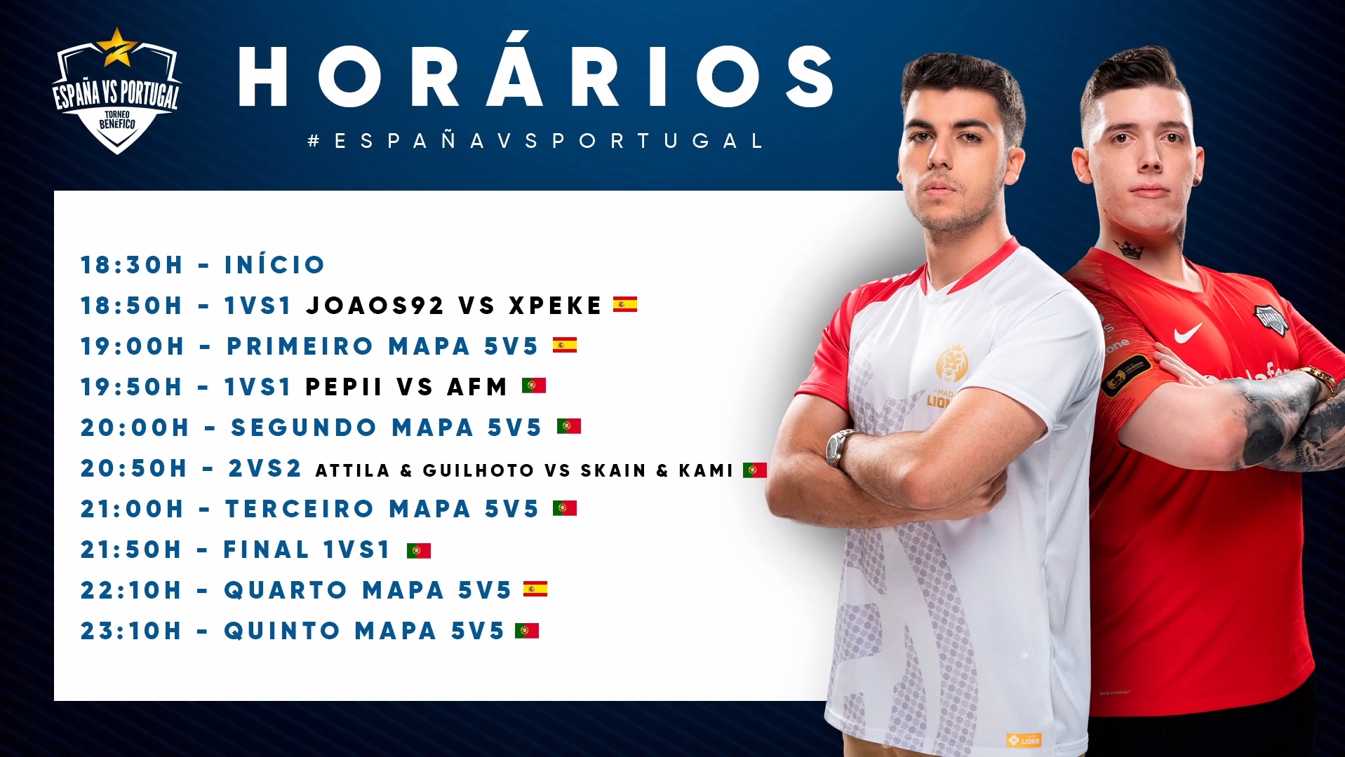 Organizado por Ibai e pelo El Chiringo, este showmatch solidário contou com os treinadores André Guilhoto (Origen) e José"F3arless" Pinto (Giants) no lado de Portugal, já a Espanha teve os técnicos Alejandro "Jandro" Fernández (Misfits) e Cristian "Future" Duarte (UCAM) a orientar a seleção de "Nuestros Hermanos".