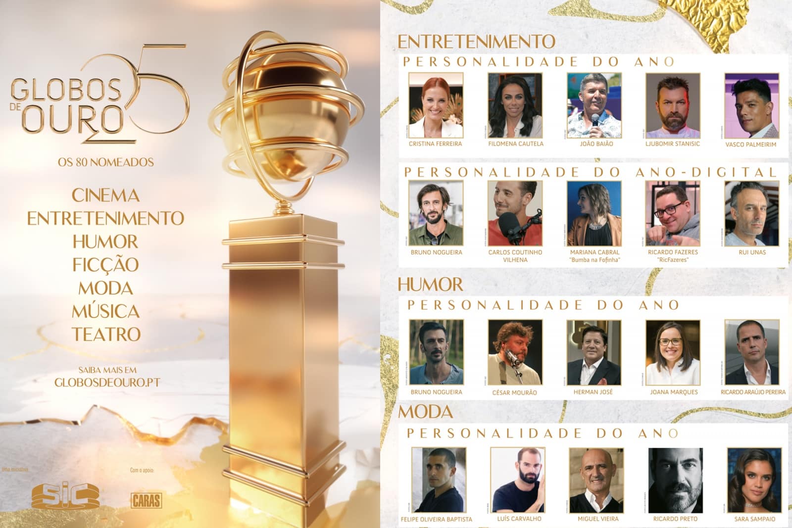 Nomeados nas categorias de Entretenimento, Humor e Moda. (Imagem: SIC)