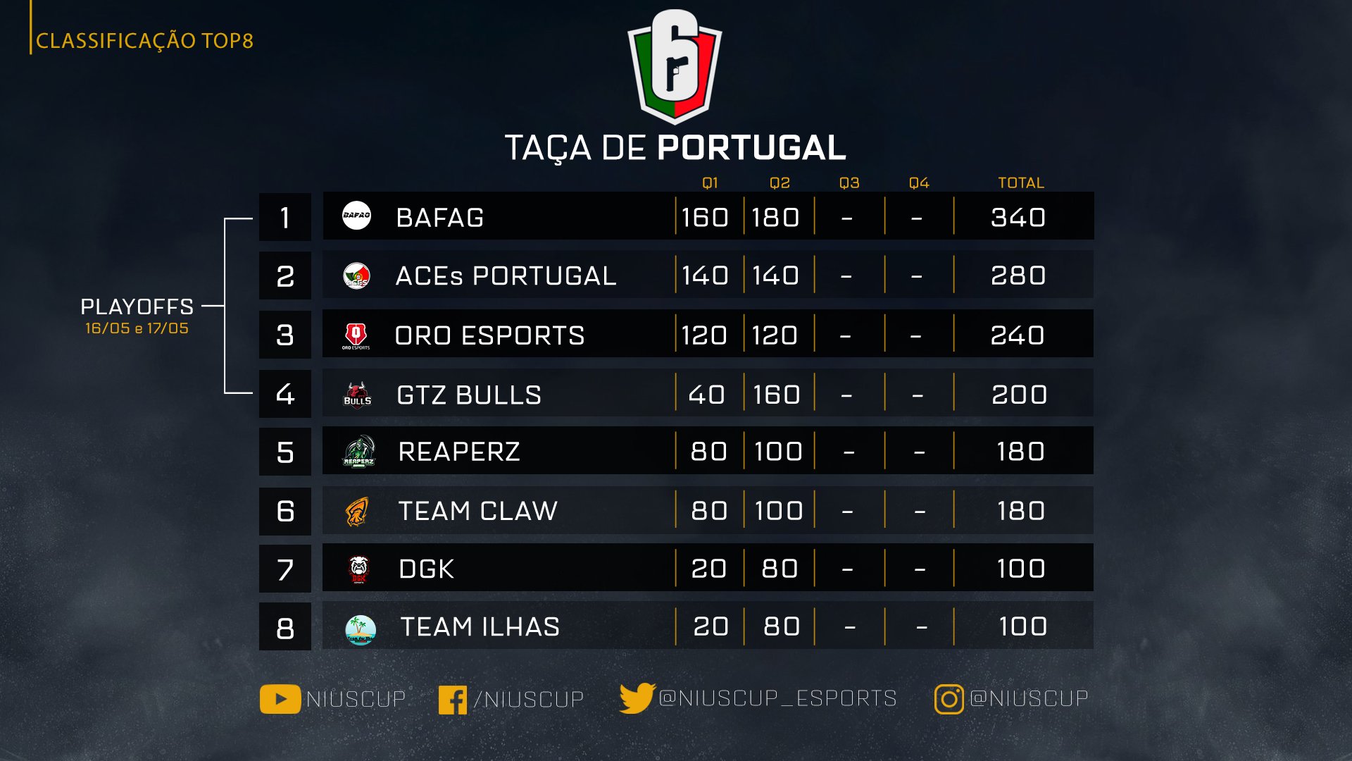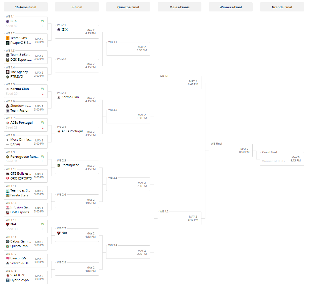 A competição inicia já amanhã (Sábado, 2 de Maio) pelas 15:00, podendo aceder à árvore do torneio e seguir os seus resultados através desta hiperligação. Recordamos em baixo a classificação geral ao fim de dois qualificadores disputados: